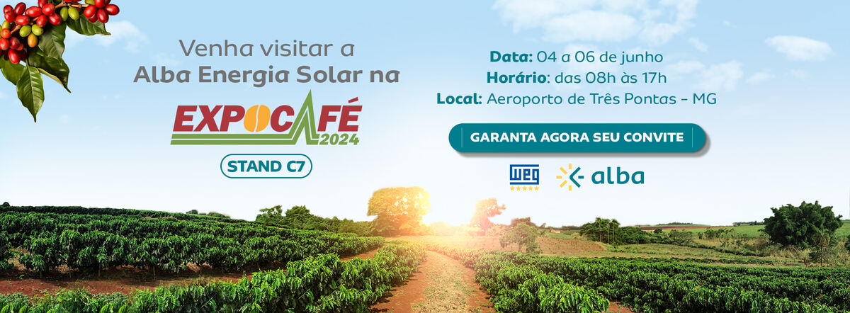 Não perca a oportunidade de visitar o stand da Alba Energia na Expocafé e conhecer as vantagens da energia solar para a sua fazenda.